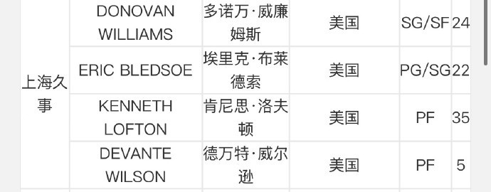 其中,上海男篮新援多诺万-威廉姆斯完成注册。